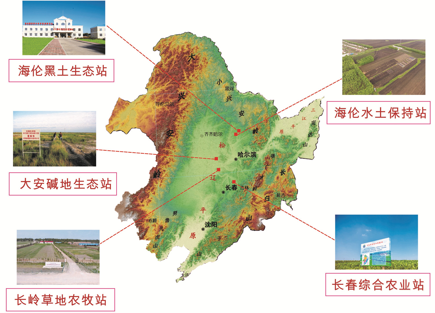 東北地理所構(gòu)建了以海倫國家生態(tài)站為核心的中國科學(xué)院東北農(nóng)業(yè)監(jiān)測網(wǎng)絡(luò),包括:中國科學(xué)院海倫農(nóng)業(yè)生態(tài)實驗站(黑龍江海倫農(nóng)田生態(tài)系統(tǒng)國家野外科學(xué)觀測研究站)、中國科學(xué)院大安堿地生態(tài)試驗站、中國科學(xué)院長嶺草地農(nóng)牧生態(tài)研究站、中國科學(xué)院海倫水土保持監(jiān)測站、中國科學(xué)院長春綜合農(nóng)業(yè)試驗站,形成了覆蓋東北主要糧食產(chǎn)區(qū)的農(nóng)業(yè)生態(tài)系統(tǒng)野外長期定位觀測網(wǎng)絡(luò)。