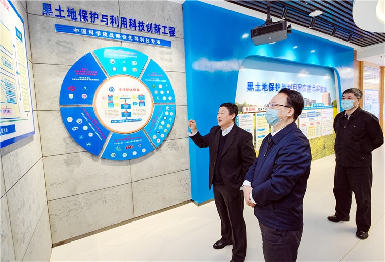 景俊海一行先后來到中科院大豆分子設(shè)計育種重點實驗室、黑土區(qū)農(nóng)業(yè)生態(tài)重點實驗室實地察看科研項目進(jìn)展,詳細(xì)了解最新科研成果,鼓勵科研人員加強(qiáng)原創(chuàng)性、引領(lǐng)性科技攻關(guān),積極推動農(nóng)業(yè)技術(shù)與人工智能、大數(shù)據(jù)等新技術(shù)深度融合,盡快在生物育種、水土流失防治、鹽堿地治理等領(lǐng)域?qū)崿F(xiàn)突破。