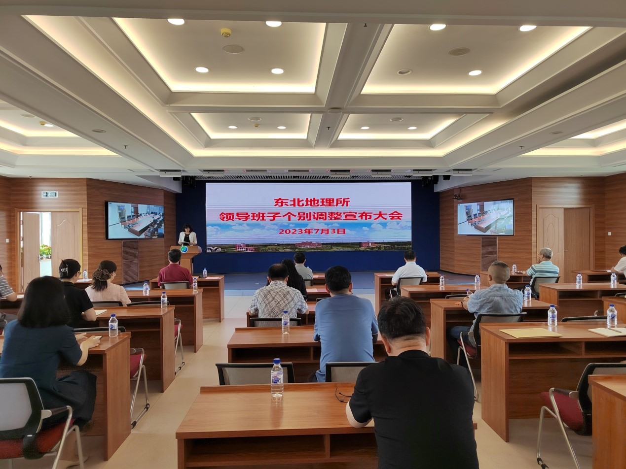 7月3日,東北地理所召開領導班子調整宣布大會。長春分院領導,研究所領導班子成員,黨委委員,紀委委員,學術委員會主任、副主任,中層干部,各科研單元主任、副主任,黨支部書記,職代會成員代表50余人參會,會議由長春分院分黨組副書記王曉慧主持。