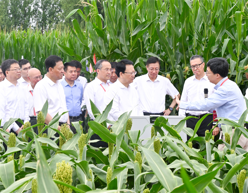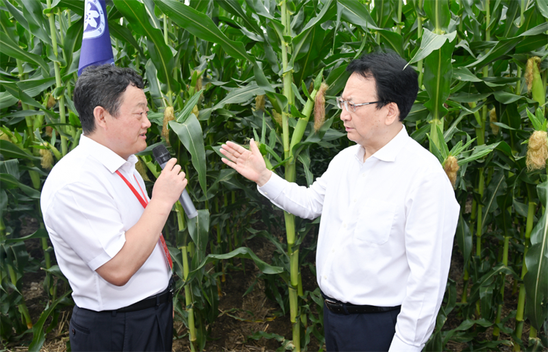 7月22日,省委書記景俊海,省委副書記、省長胡玉亭與參加活動嘉賓共同參觀黑土地保護成果實景展,實地察看中國科學院玉米新品種。鄒乃碩 攝