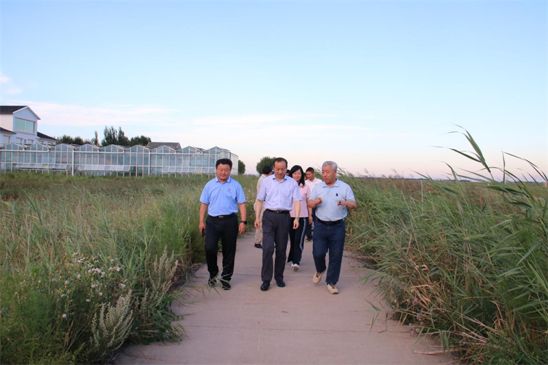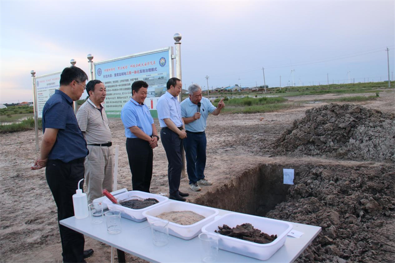 慰問調(diào)研期間,李和風(fēng)一行考察了大安堿地生態(tài)試驗站及“黑土糧倉”科技會戰(zhàn)大安示范區(qū)示范田,大安堿地生態(tài)試驗站站長梁正偉研究員詳細(xì)介紹基本情況與工作進展。