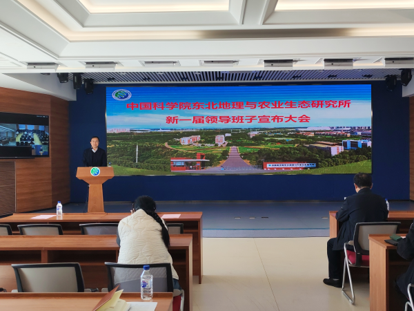 2025年10月24日,中國(guó)科學(xué)院東北地理與農(nóng)業(yè)生態(tài)研究所召開(kāi)了新一屆領(lǐng)導(dǎo)班子宣布大會(huì)。中國(guó)科學(xué)院長(zhǎng)春分院分黨組書(shū)記、院長(zhǎng)金宏,人事人才處處長(zhǎng)彥飛,東北地理所領(lǐng)導(dǎo)班子成員、黨委委員、紀(jì)委委員、管理部門(mén)正副職、實(shí)驗(yàn)室(中心)正副主任、黨支部(黨總支)書(shū)記、正高級(jí)專(zhuān)業(yè)技術(shù)人員、管理和支撐部門(mén)工作人員、工會(huì)代表、離退休職工代表、研究生代表等140余人參加本次會(huì)議。會(huì)議由金宏主持。