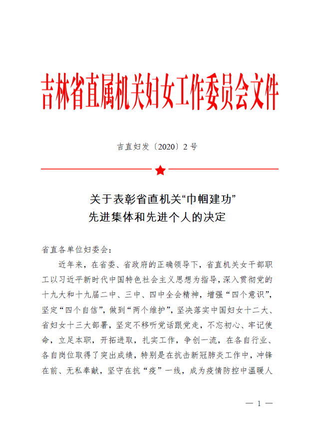 “巾幗建功”獎(jiǎng)項(xiàng)的設(shè)立意在表彰在各自行業(yè)、各自崗位取得了突出成績(jī),特別是在抗擊新冠肺炎工作中,沖鋒在前、無私奉獻(xiàn),堅(jiān)守在抗“疫”一線,成為疫情防控中溫暖人心的巾幗力量,為推動(dòng)省直機(jī)關(guān)各項(xiàng)工作發(fā)展做出了積極貢獻(xiàn)的、以女性為主的先進(jìn)集體、崗位和個(gè)人。疫情發(fā)生以來,長春分院系統(tǒng)廣大女職工堅(jiān)守崗位,齊心協(xié)力抗擊疫情同時(shí)有序推進(jìn)復(fù)工復(fù)產(chǎn),以實(shí)際行動(dòng)在疫情防控和推動(dòng)研究所科技創(chuàng)新發(fā)展中發(fā)揮半邊天力量。
