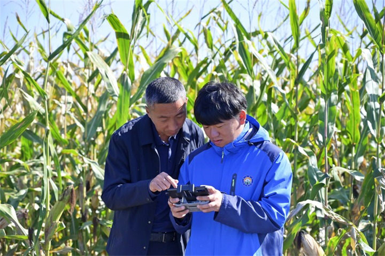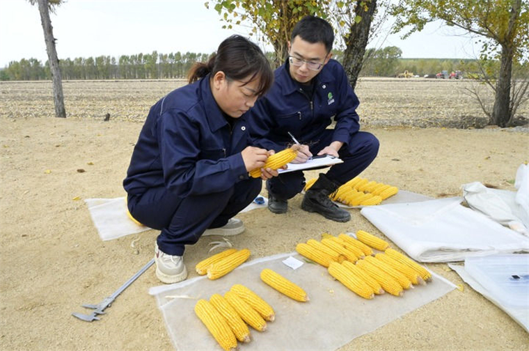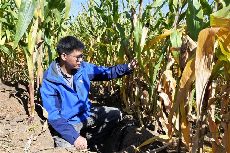 ↑9月27日,研究人員在位于雙鴨山市友誼縣的友誼農(nóng)場(chǎng)查看玉米長(zhǎng)勢(shì)。新華社記者 石楓 攝