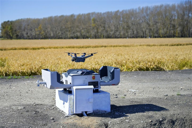 ↑9月28日,在位于雙鴨山市的中國(guó)科學(xué)院北大荒友誼現(xiàn)代農(nóng)業(yè)實(shí)驗(yàn)站,完成智能巡田任務(wù)的無(wú)人機(jī)在定期自動(dòng)返航。新華社記者 石楓 攝