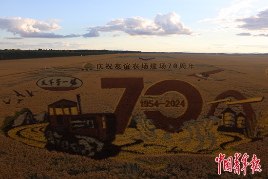 友誼農(nóng)場(chǎng)“萬(wàn)畝大地號(hào)”上的秋收?qǐng)鼍?。中青?bào)·中青網(wǎng)見(jiàn)習(xí)記者?李思攝