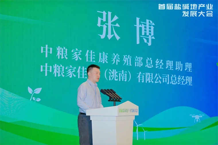 中糧家佳康養(yǎng)殖部總經(jīng)理助理、中糧家佳康(洮南)有限公司總經(jīng)理張博介紹了該公司在吉林省發(fā)展循環(huán)農(nóng)業(yè)和推動鹽堿地改良的實(shí)踐探索。通過生態(tài)養(yǎng)殖模式,將生豬養(yǎng)殖過程中的糞便轉(zhuǎn)化為沼肥和沼氣,用于企業(yè)供熱發(fā)電和農(nóng)業(yè)種植,改良鹽堿地。在吉林省松原和白城地區(qū)建設(shè)15座資源化利用中心,投入近3億元,改良周邊鹽堿化土地2萬余畝。在改良后的鹽堿地上種植水稻、花生、玉米等作物,實(shí)現(xiàn)增產(chǎn)增收。