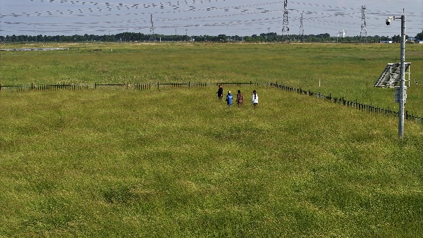 “我們在10000余份優質羊草種質資源中,篩選出63份具備植株高大、種子產量高、耐鹽堿性強的羊草種質在這里進行擴繁試驗?!敝袊茖W院東北地理與農業生態研究所研究員馬紅媛介紹。羊草是松嫩平原上的一個原始優勢物種,其地下根莖可延伸至2米以上,能夠形成密集的植被網絡,有效防風保濕固沙,起到很好的草原生態修復作用。