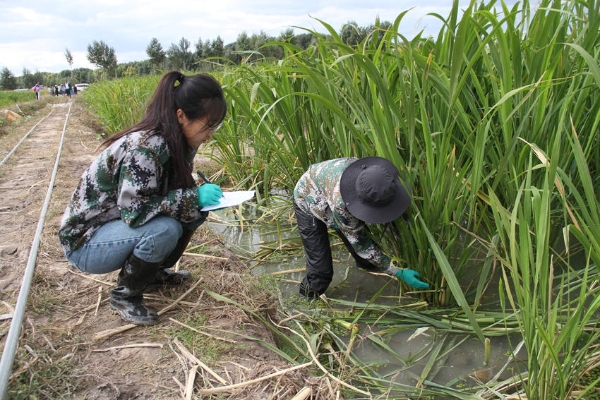 在鎮(zhèn)賚縣坦途鎮(zhèn)的蘇吉匯農(nóng)業(yè)科技有限公司茭白田里,曾經(jīng)白茫茫一片的重度鹽堿地,如今已化作千畝碧波,碧綠的茭白葉泛著油亮的光澤,隨風(fēng)起伏,仿佛一片綠色的海洋。測產(chǎn)專家們就走進(jìn)中國科學(xué)院東北地理與農(nóng)業(yè)生態(tài)研究所在大田布置的控制實驗基地,交流研究進(jìn)展和定位監(jiān)測記錄的結(jié)果,大家對單項技術(shù)以及技術(shù)集成的應(yīng)用效果表現(xiàn)出極大興趣和認(rèn)可。專家組隨后來到生產(chǎn)田塊,“這片葉子顏色深綠,說明肥水管理到位。”“個別葉鞘下部出現(xiàn)少量褐斑,后期要注意針對性處理。”測產(chǎn)還未開始,專家們就已俯身田間,或蹲或立,仔細(xì)查看茭白的株高、葉色、根系發(fā)育情況。他們時而用手指輕捻葉片,感受葉片的質(zhì)地;時而用尺測量株行距,精準(zhǔn)記錄數(shù)據(jù)。他們還不時與身旁的農(nóng)戶和企業(yè)技術(shù)人員交流意見,為這片茭白田的豐收“把脈問診”。陽光灑在他們專注的臉上,汗水順著鬢角滑落,卻絲毫沒有影響他們工作的熱情。