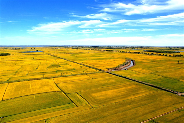 金秋時(shí)節(jié)的鎮(zhèn)賚,松嫩平原的風(fēng)掠過(guò)百萬(wàn)畝良田,稻浪翻滾如金色海浪,玉米籽粒飽滿散發(fā)成熟的清香,水田深處蟹肥蝦鮮。作為吉林省水稻生產(chǎn)第一大縣,這座被嫩江滋養(yǎng)的小城,正以科技為筆,繪就糧漁雙收的豐收畫(huà)卷。