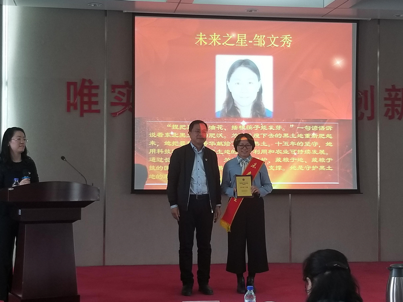 未來之星——鄒文秀。“捏把黑土冒油花、插根筷子能發芽?!币痪渲V語訴說著東北黑土地的肥沃。為了讓瘦下去的黑土地重新肥起來,她把最美的芳華獻給了這片熱土。十五年的堅守,她用科技實現了東北黑土地的保護利用和農業可持續發展。通過長期的定位實驗,為黑土地保護、藏糧于地、藏糧于技的國家戰略實施提供了理論和技術支撐。