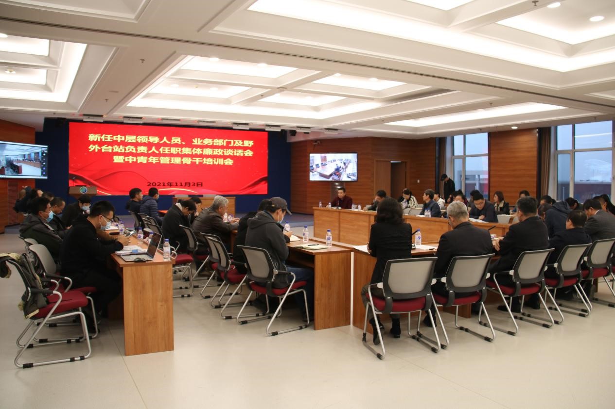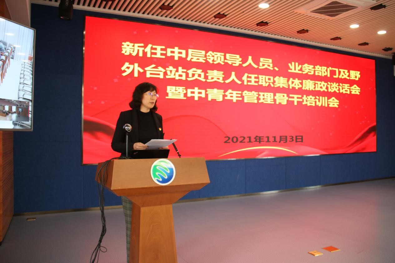 黨委書記蘇陽代表所黨委與中層干部作集體廉政談話,并對中層干部進行了上崗專題培訓。他以“守住底線 銳意進取 創(chuàng)先爭優(yōu)——做忠誠 干凈 擔當 履職盡責的黨的好干部”為題作專題報告。他從年齡結(jié)構(gòu)、學歷結(jié)構(gòu)、專業(yè)背景、政治面貌等方面對新任職中層干部整體情況進行了全面梳理。他指出,這次調(diào)整按“精兵簡政、按需設崗、雙向選擇、競爭上崗”的原則,堅持把政治標準放在首位,選拔聘用又紅又專的干部,為更多專業(yè)背景好同時具有一定管理能力的優(yōu)秀的年輕人提供了鍛煉機會。他進一步闡述了廉政談話的目的和意義,對中層干部提出廉潔從政的具體要求,并結(jié)合習近平總書記在2021年秋季學期中央黨校(國家行政學院)中青年干部培訓班開班式上發(fā)表的重要講話精神,對中層干部強化責任意識、履職擔當提出五點要求:一要加強政治理論學習,二要有崇高理想和堅定信念,三要堅持一切從實際出發(fā),四要敢擔當、善作為,堅持斗爭精神,五要講規(guī)矩、守底線。