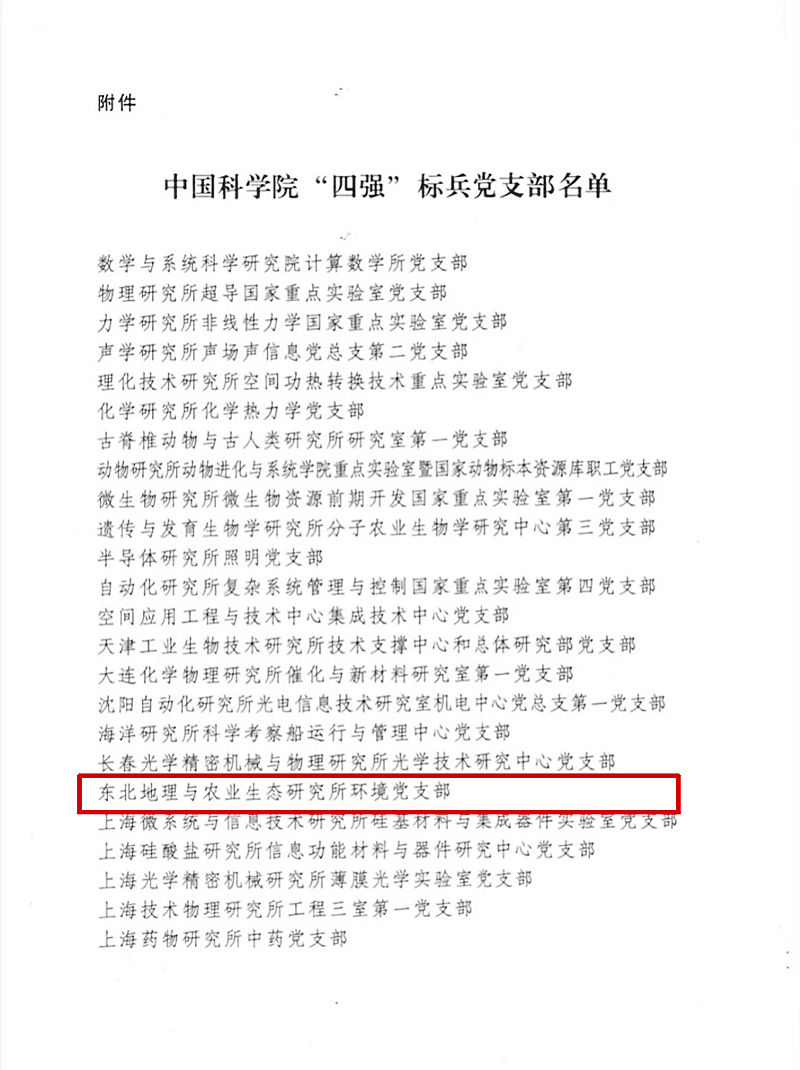 東北地理所環(huán)境黨支部榮獲中國科學(xué)院“四強(qiáng)”標(biāo)兵黨支部稱號(hào)