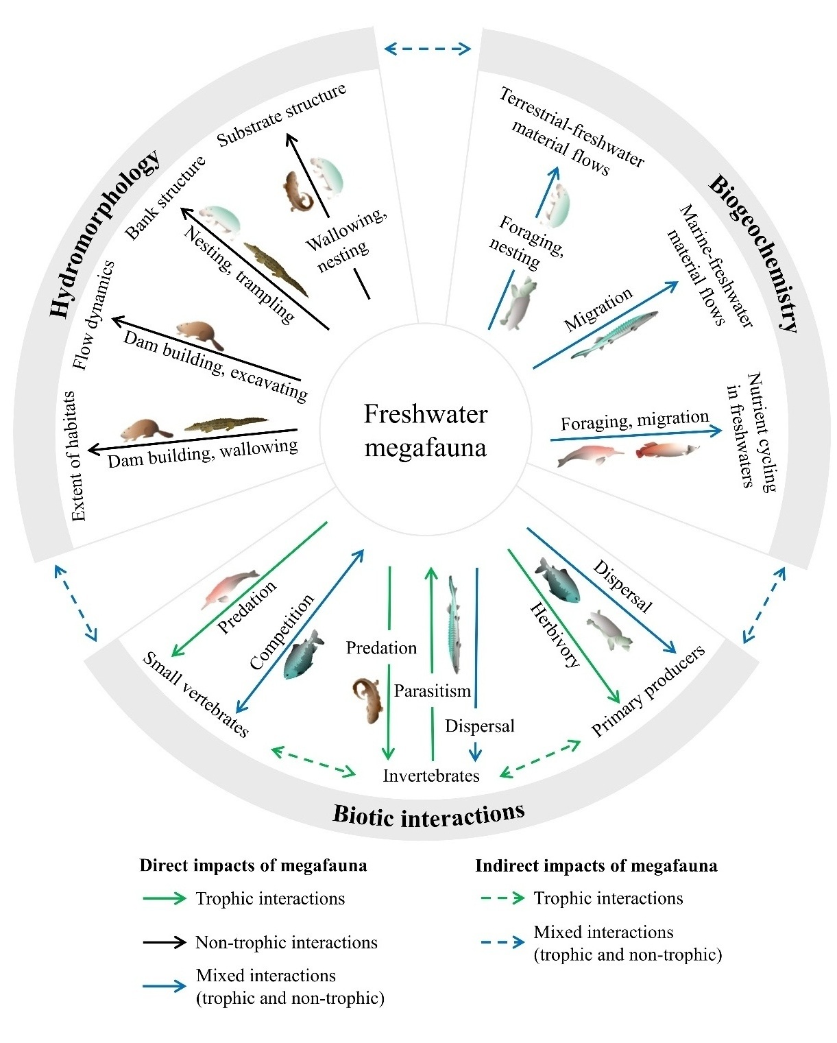 1.?He,F.*,Svenning,J. C.,Chen,X.,Tockner,K.,Kuemmerle,T.,le Roux,E.,Moleón,M.,Gessner,J. & J?hnig,S. C. (2024). Freshwater megafauna shape ecosystems and facilitate restoration. Biological Reviews. 99(4),1141-1163. https://doi.org/10.1111/brv.13062.