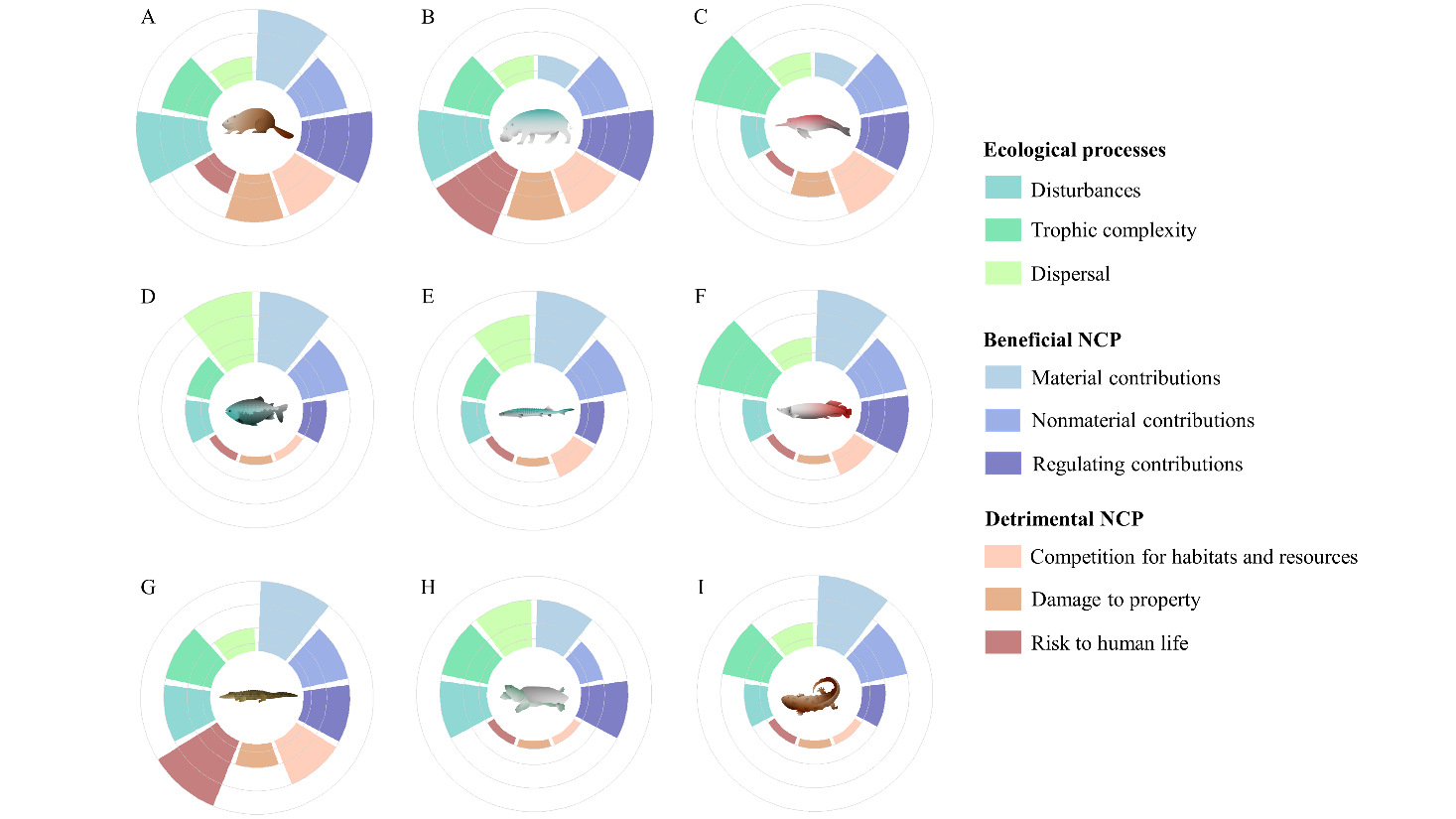 圖2 恢復(fù)本土大型動物種群對淡水生態(tài)過程和自然對人類貢獻(NCP)的影響