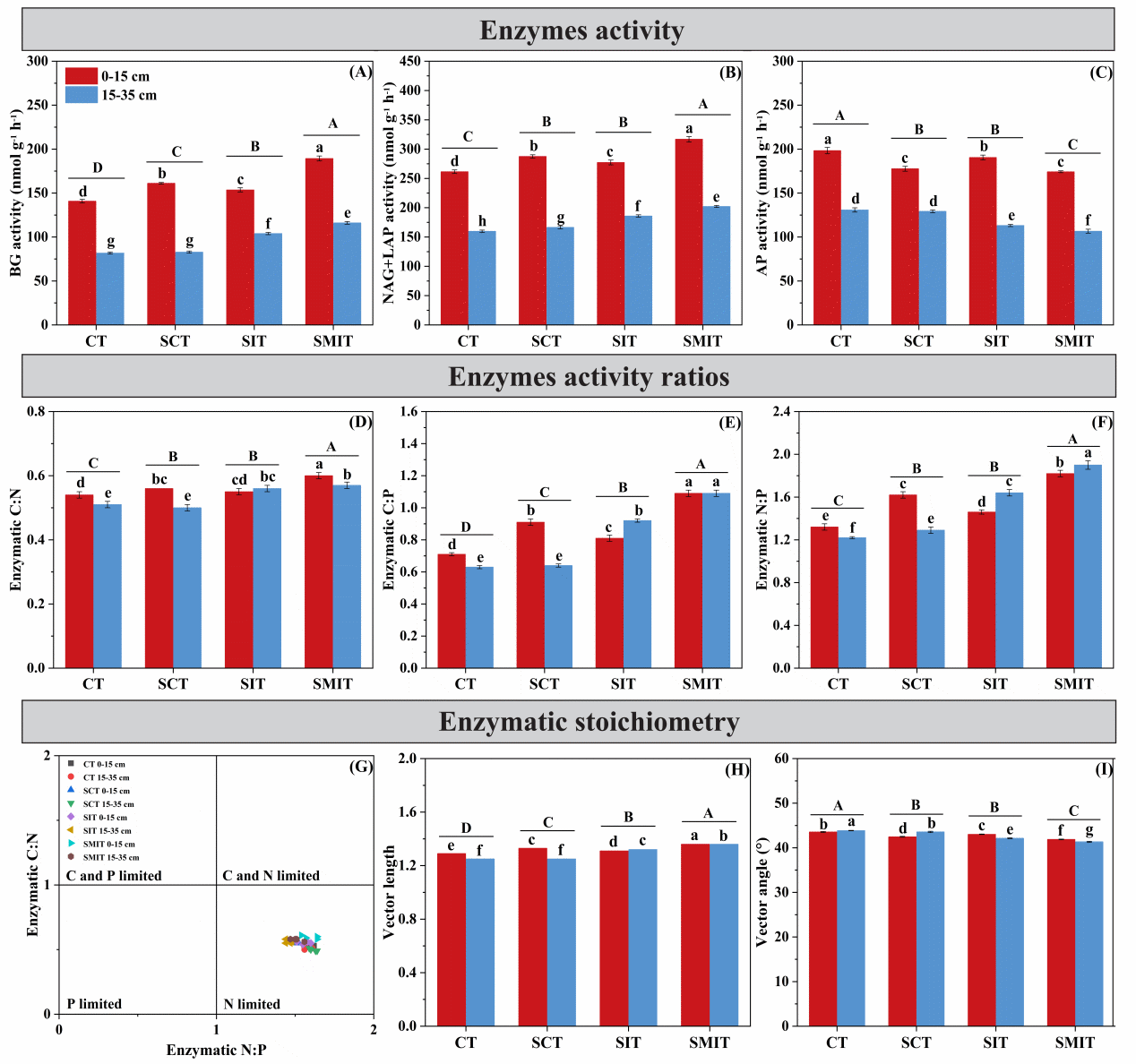 圖1. 土壤胞外酶活性對耕作和有機物料還田的響應