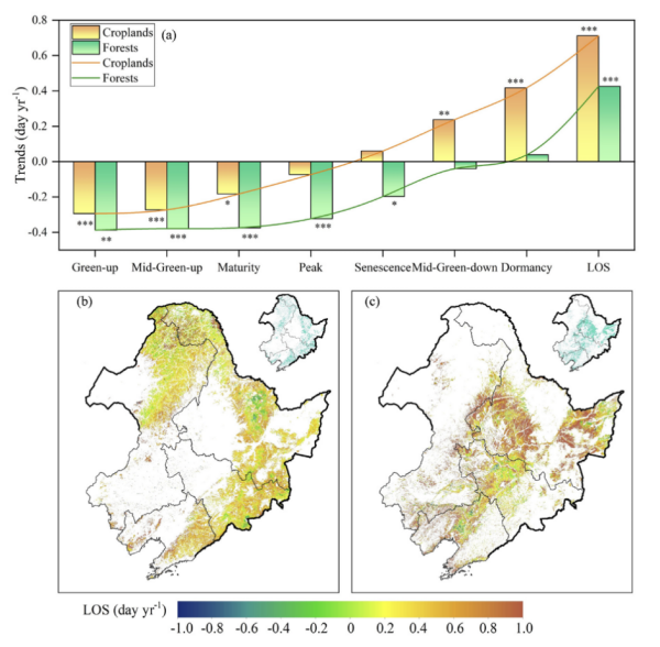 東北地理所在農(nóng)田和森林物候?qū)^(qū)域氣候的生物物理反饋差異及機制方面取得新進展