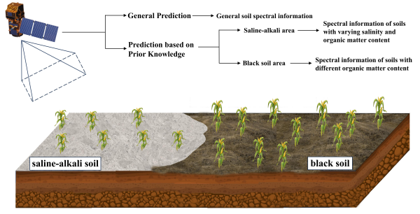 圖1. 基于先驗知識并結合鹽堿和黑土區劃分的光譜信息選取示意圖