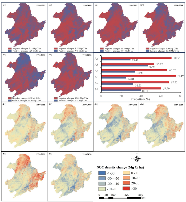 圖1 東北地區(qū)歷史SOC的正負變化和密度變化