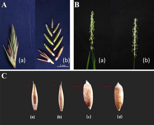 ?圖2 羊草小穗結(jié)構(gòu)及穎果的形態(tài)特征