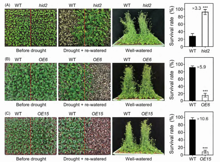 圖1. HID2負(fù)向調(diào)控?cái)M南芥耐旱性的生理表型