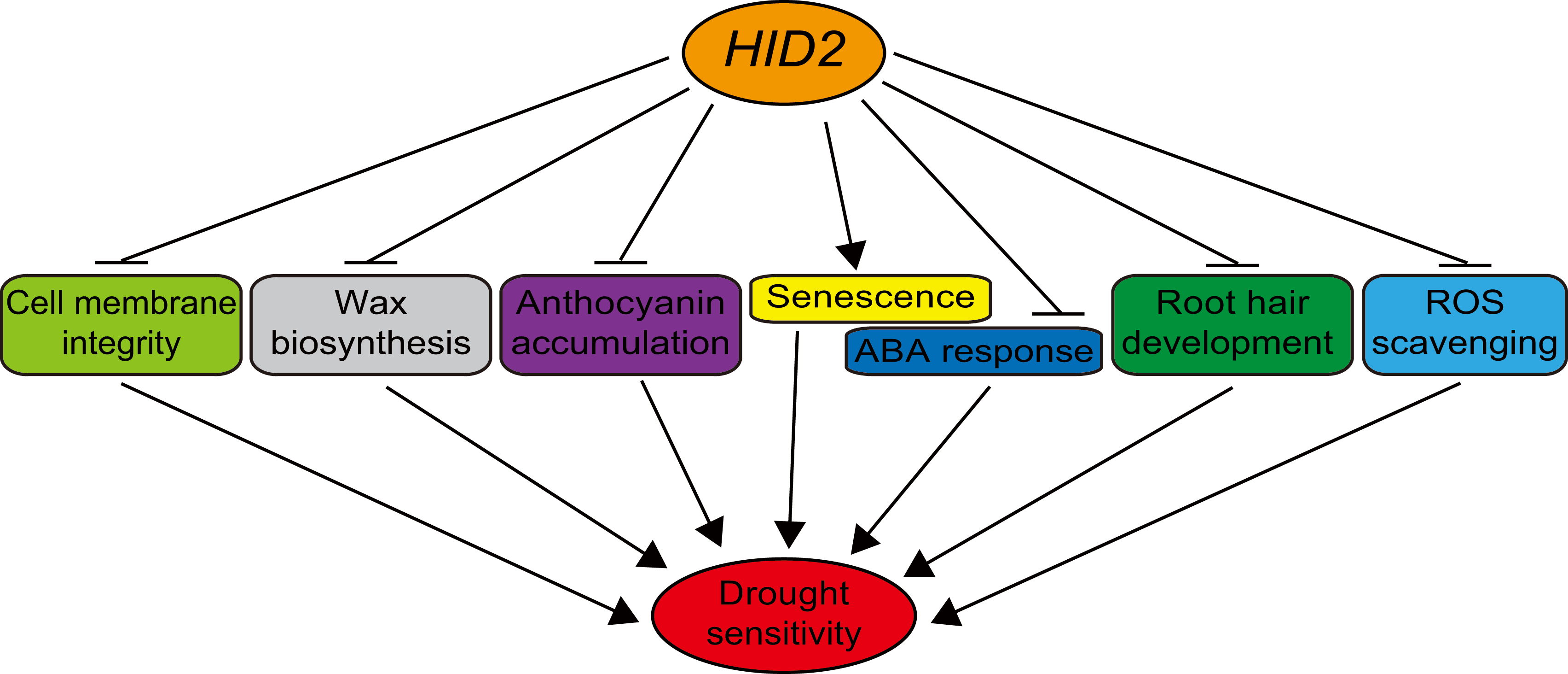圖2. HID2負(fù)向調(diào)控?cái)M南芥耐旱性的分子機(jī)制