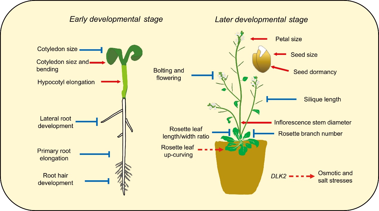 圖5. 擬南芥DLK2參與植物發(fā)育和抗逆響應(yīng)的調(diào)控模型