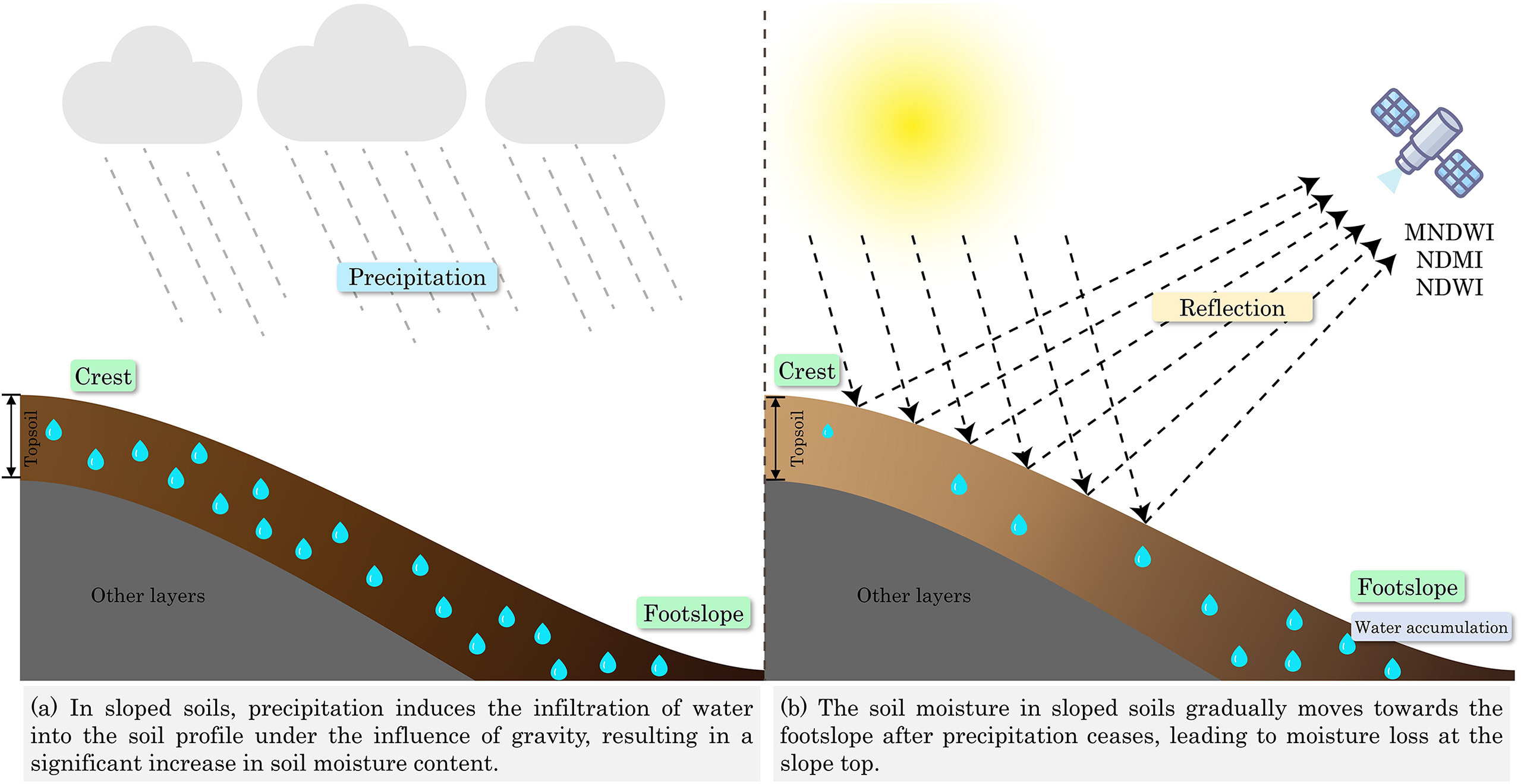 土壤有機質(zhì)(SOM)是衡量土壤健康和農(nóng)業(yè)可持續(xù)發(fā)展的關(guān)鍵指標。然而,由于環(huán)境驅(qū)動因素(特別是土壤水分動態(tài))的復(fù)雜相互作用,在大空間尺度上實現(xiàn)高分辨率的SOM制圖仍然面臨巨大挑戰(zhàn)。當前主流的SOM制圖方法仍然嚴重依賴于空間信息,而對時間維度的特征考慮不足。特別是,現(xiàn)有研究很少將土壤水分的長期動態(tài)變化及其與SOM含量的復(fù)雜物理反饋機制納入考量。