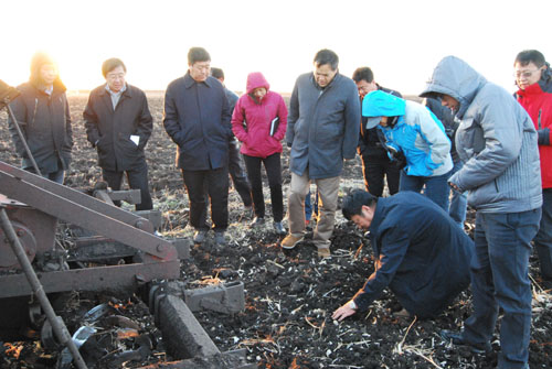 2014年10月20-21日,農(nóng)業(yè)部總經(jīng)濟師錢克明、農(nóng)業(yè)部發(fā)展計劃司劉北樺副司長、省農(nóng)委副主任白雪華等領(lǐng)導(dǎo),在所長助理劉寶輝研究員和海倫站站長韓曉增研究員等陪同下到“海倫農(nóng)田生態(tài)系統(tǒng)國家野外科學(xué)觀測研究站”就黑土保護及其相關(guān)問題進行專題調(diào)研。