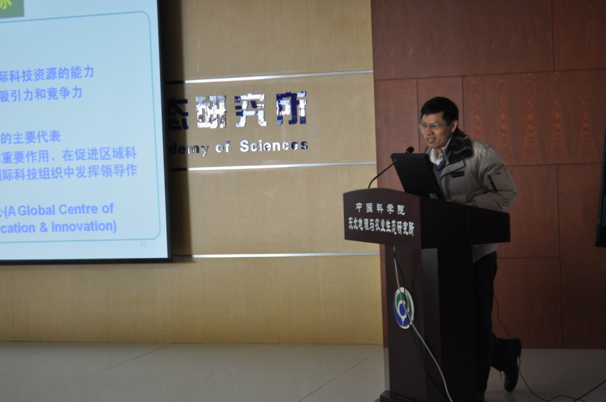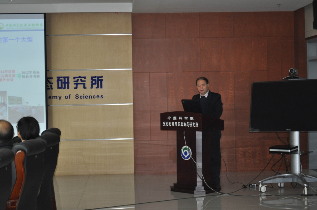 首先,張平宇副所長首先向國際合作局一行介紹了研究所的基本情況、近幾年取得的突出成果,并重點在人才、項目和創(chuàng)新團隊建設(shè)等方面介紹了我所的國際合作工作。隨后,國際合作局張世專副處長介紹了國際知名研究機構(gòu)的國際化布局、我院率先行動計劃的國際化戰(zhàn)略和中科院十三五國際合作規(guī)劃。邱華盛副局長介紹了我院在中亞、南亞、東北亞及非洲地區(qū)的戰(zhàn)略布局、援建項目及同周邊國家開展國際合作的需求,并鼓勵東北地理所利用地緣優(yōu)勢,面向國家需求,利用院內(nèi)院外平臺,積極開展與東北亞及俄羅斯的合作交流。邱華盛副局長同時充分肯定了我所作為區(qū)域特色鮮明的研究所,在利用地緣優(yōu)勢、學(xué)科特色同周邊國家開展了一系列富有成效的國際合作交流,希望我所能發(fā)遠眼光,以東北亞周邊國家為基礎(chǔ),進一步拓展在非洲及南美地區(qū)相關(guān)農(nóng)業(yè)領(lǐng)域的國際合作研究。何興元所長代表研究所對國際合作局一行表示熱烈的歡迎,并介紹了我所在東北亞區(qū)域發(fā)展、濕地和黑土侵蝕等方面的國際合作潛力和人才國際化培養(yǎng)中取得的初步成果。希望能夠結(jié)合科學(xué)院的率先行動計劃及國際合作局的十三五規(guī)劃,從項目爭取及人才培養(yǎng)引進入手,將我所的國際合作水平推向一個新的臺階。邱華盛副局長肯定了我所作為區(qū)域特色鮮明的研究所,在利用地緣優(yōu)勢、學(xué)科特色同周邊國家開展了一系列富有成效的國際合作交流,希望我所能發(fā)遠眼光,拓展在非洲及南美地區(qū)農(nóng)業(yè)領(lǐng)域的國際合作研究。