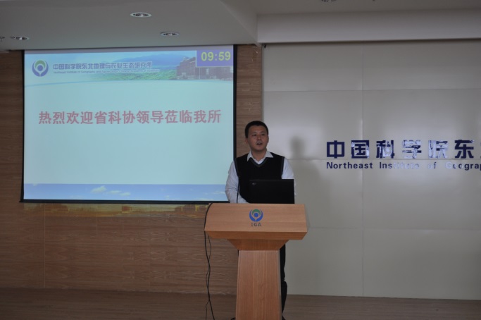 此次調(diào)研和參觀是中國(guó)科協(xié)會(huì)員日活動(dòng)的一部分,旨在通過(guò)調(diào)研和走訪(fǎng),了解科技工作者的生活,增進(jìn)學(xué)會(huì)間了解和學(xué)科互動(dòng),提升學(xué)會(huì)活力。張平宇副所長(zhǎng)代表研究所致辭,,感謝科協(xié)對(duì)我所長(zhǎng)期以來(lái)的支持和關(guān)愛(ài)以及對(duì)我所學(xué)會(huì)工作的重視。我所兩個(gè)掛靠學(xué)會(huì),吉林省地理學(xué)會(huì)和吉林省遙感學(xué)會(huì)將利用自身的學(xué)科優(yōu)勢(shì),進(jìn)一步擴(kuò)大學(xué)會(huì)影響力,更好的服務(wù)于學(xué)科發(fā)展。科研處崔明星處長(zhǎng)助理介紹了東北地理所基本概況、人才隊(duì)伍和主要科研成果,重點(diǎn)介紹了近幾年學(xué)會(huì)開(kāi)展的學(xué)術(shù)活動(dòng)和科普宣傳工作。