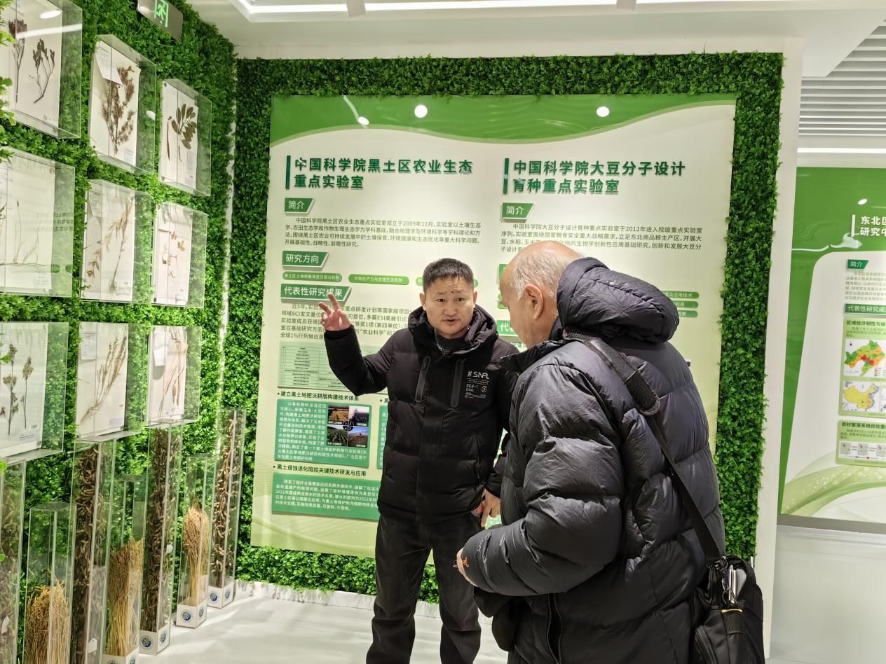 報(bào)告會(huì)后,在黃迎新研究員的陪同下,Cory Matthew教授參觀了黑土糧倉科技會(huì)戰(zhàn)指揮中心宣傳展示平臺(tái),黃迎新研究員詳細(xì)介紹了黑土糧倉科技會(huì)戰(zhàn)實(shí)施以來,取得的重要成果和技術(shù)突破。