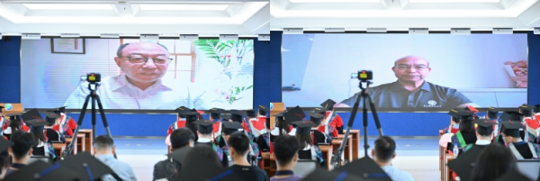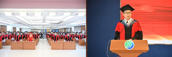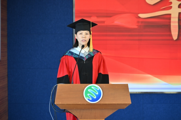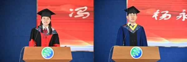 博士畢業(yè)生馮明銘、碩士畢業(yè)生楊永傳代表全體博士和碩士畢業(yè)生致畢業(yè)感言。兩位畢業(yè)生代表回顧學(xué)習(xí)生涯、分享科研感悟,感念師恩,并表達(dá)了對(duì)母校的不舍之情。經(jīng)過這段求學(xué)生涯的錘煉,他們在挫敗中成長,在堅(jiān)持中奮發(fā),他們自立自強(qiáng),奔赴夢想。