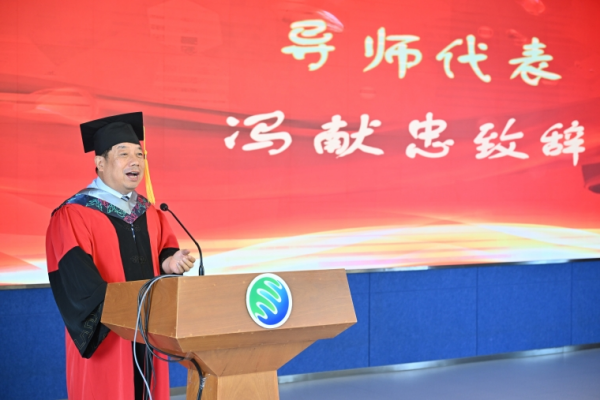 博士生導(dǎo)師馮獻(xiàn)忠研究員代表研究生導(dǎo)師在畢業(yè)典禮上發(fā)言。他欣慰于畢業(yè)生們的成長,他寄語同學(xué)們,要腳踏大地、仰望星空,要滿懷信仰、志存高遠(yuǎn),要在屬于自己的蒼穹下,書寫出劃破天際的璀璨人生!