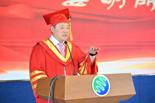 姜明在畢業(yè)典禮上致辭。他向圓滿完成學(xué)業(yè)的同學(xué)們表示誠摯的祝賀,向老師和家長朋友們致以衷心的感謝,并以“厚植黑土擔(dān)使命 賡續(xù)創(chuàng)新譜新篇”為主題,給同學(xué)們上了在東北地理所的最后一堂課。他希望畢業(yè)生要弘揚(yáng)“黑土精神”,永葆艱苦奮斗本色,要保持“千磨萬擊還堅(jiān)勁”的定力,傳承“板凳甘坐十年冷”的堅(jiān)守,希望畢業(yè)生像我們培育的東生大豆一樣,把根深深扎進(jìn)泥土,把枝葉高高伸向藍(lán)天;以“功成不必在我”的精神境界和“功成必定有我”的歷史擔(dān)當(dāng),在實(shí)現(xiàn)高水平科技自立自強(qiáng)的偉大實(shí)踐中貢獻(xiàn)青春力量。