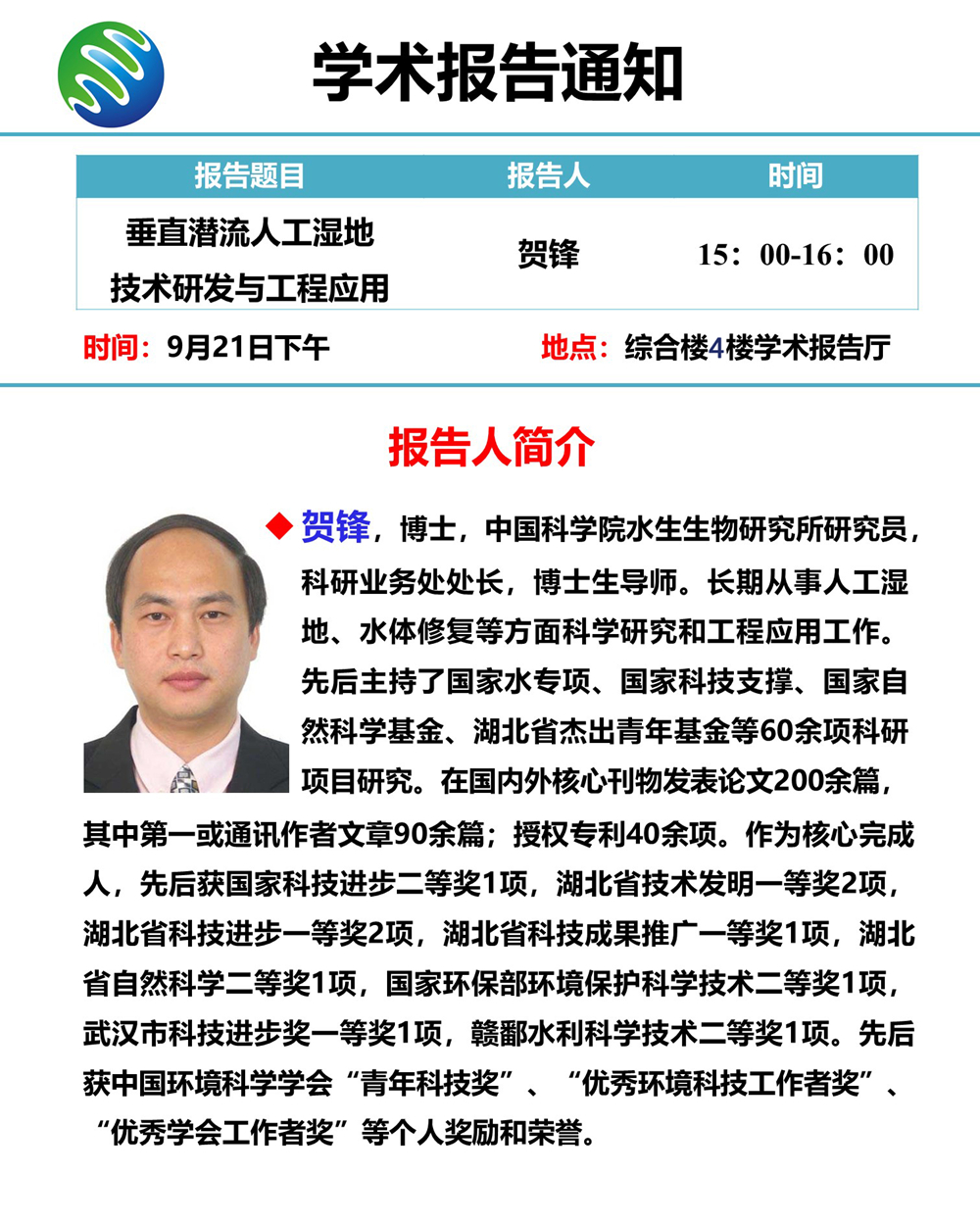 垂直潛流人工濕地技術研發與工程應用-賀鋒 研究員